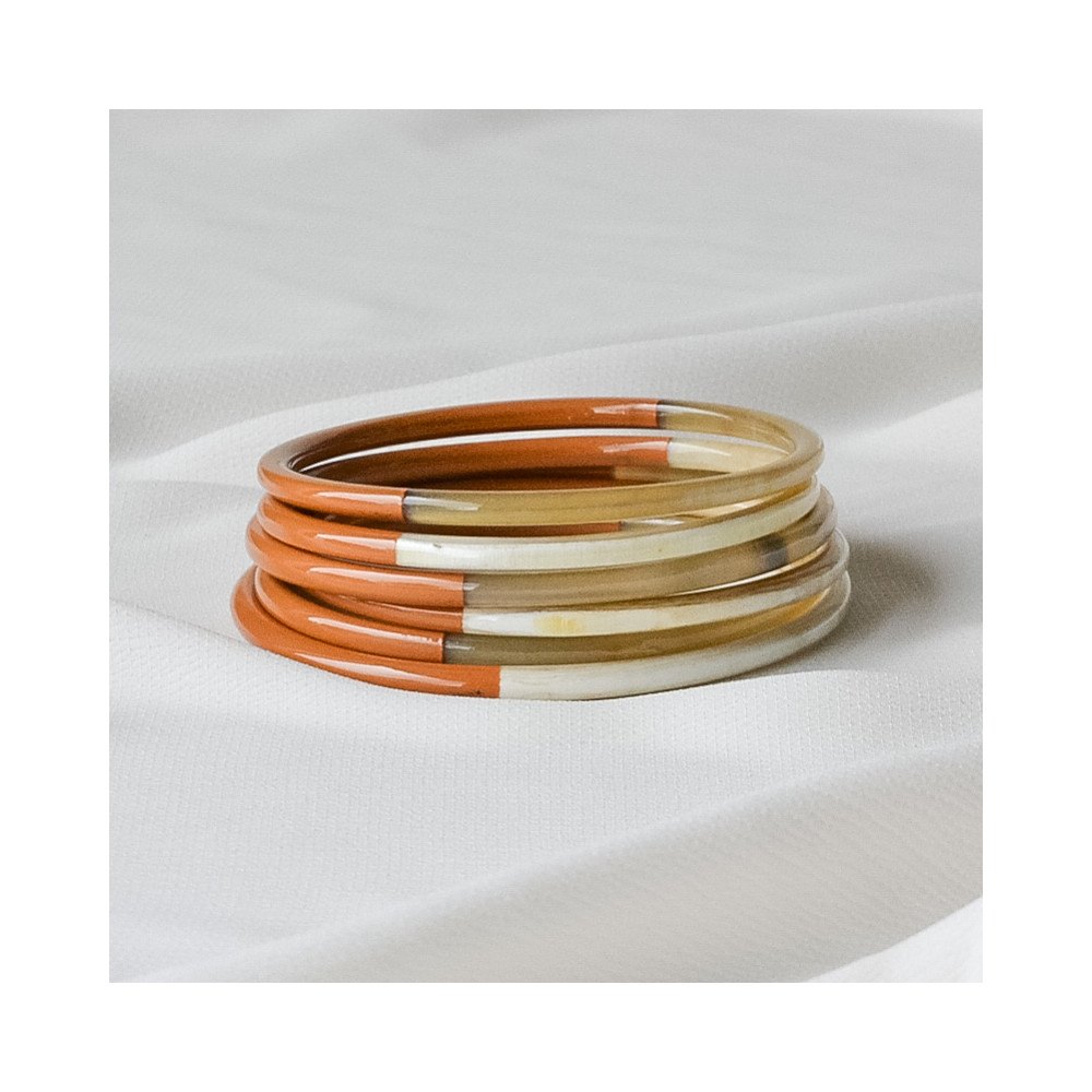 Jonc fin en corne de buffle, moitié laqué en couleur, moitié corne naturelle.
