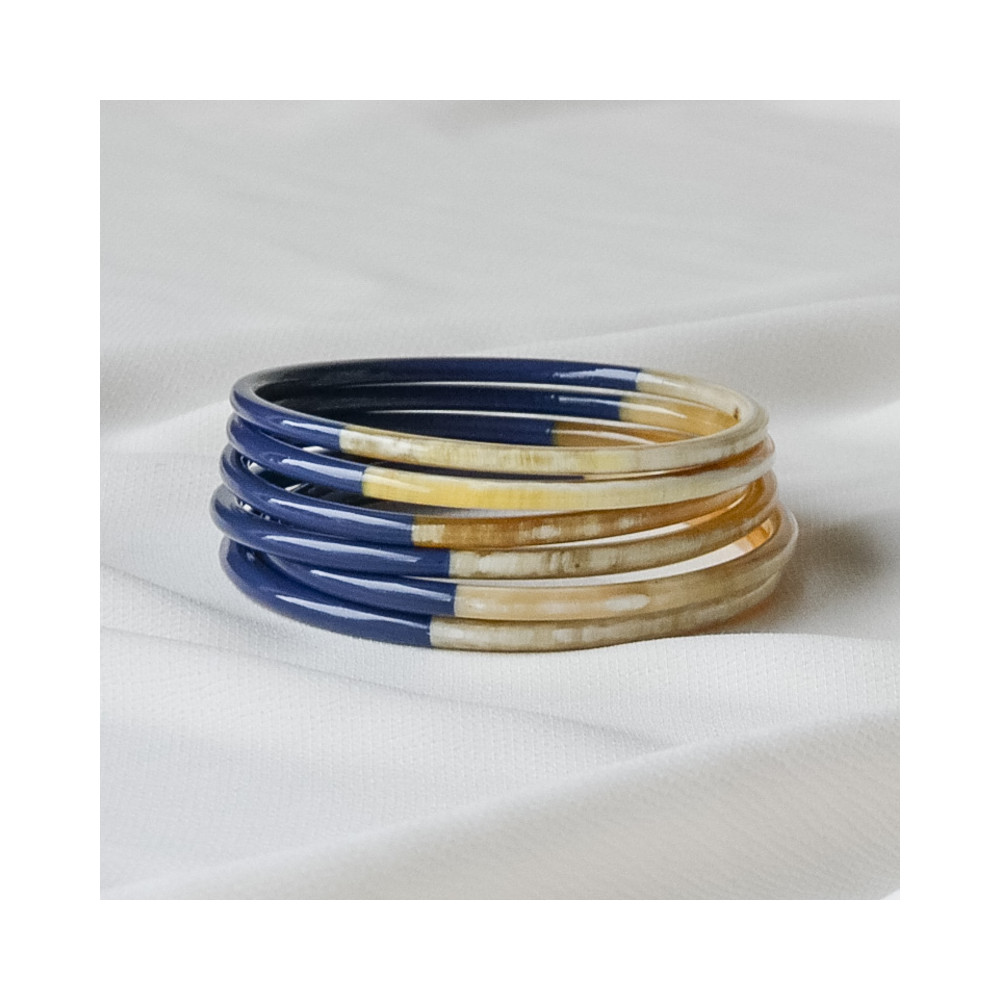 Jonc fin en corne de buffle, moitié laqué en couleur, moitié corne naturelle.