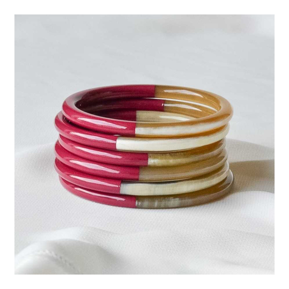 Jonc fin en corne de buffle, moitié laqué en couleur, moitié corne naturelle.