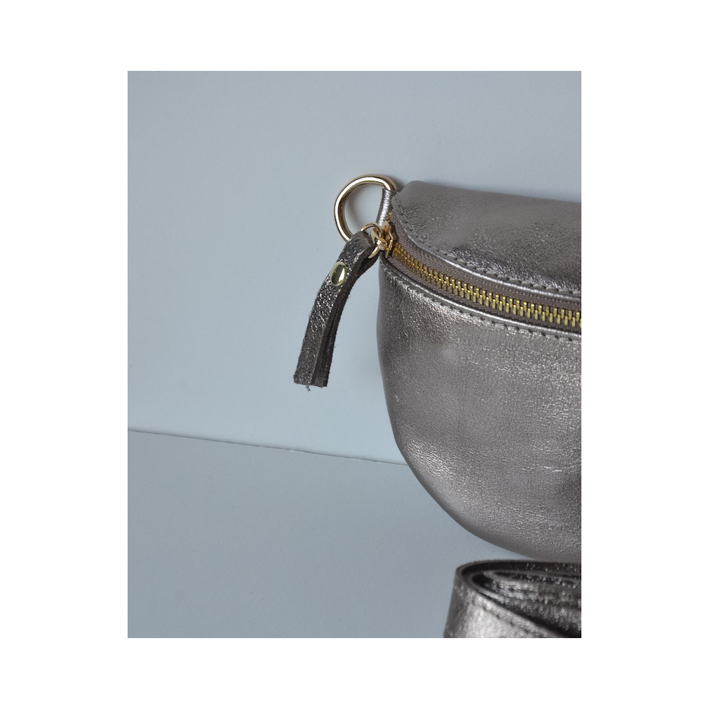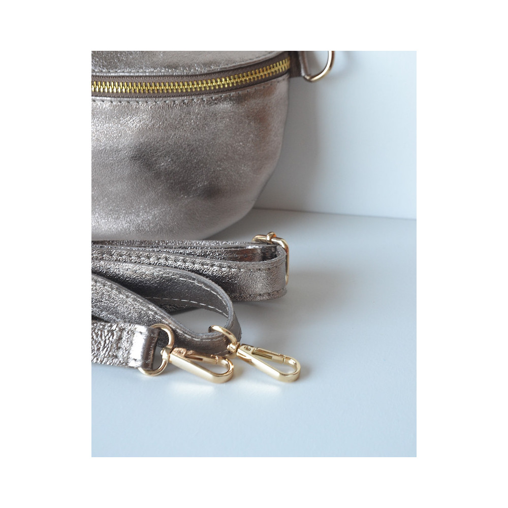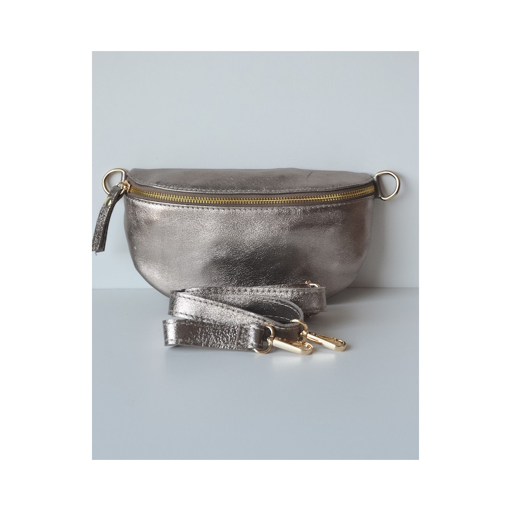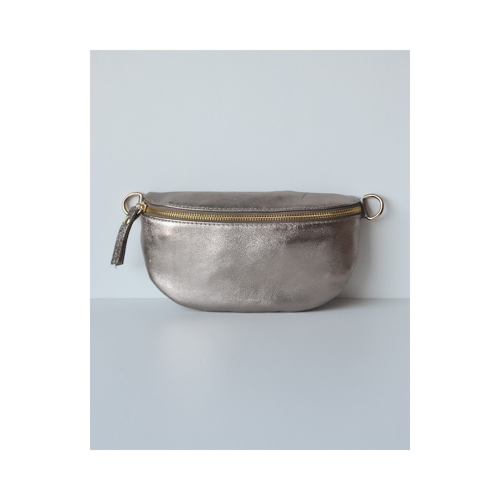 Sac banane 100% cuir avec le twist qui fait la différence : de belles couleurs brillantes ! Fabrication Italienne. Avec sa bandoulière.