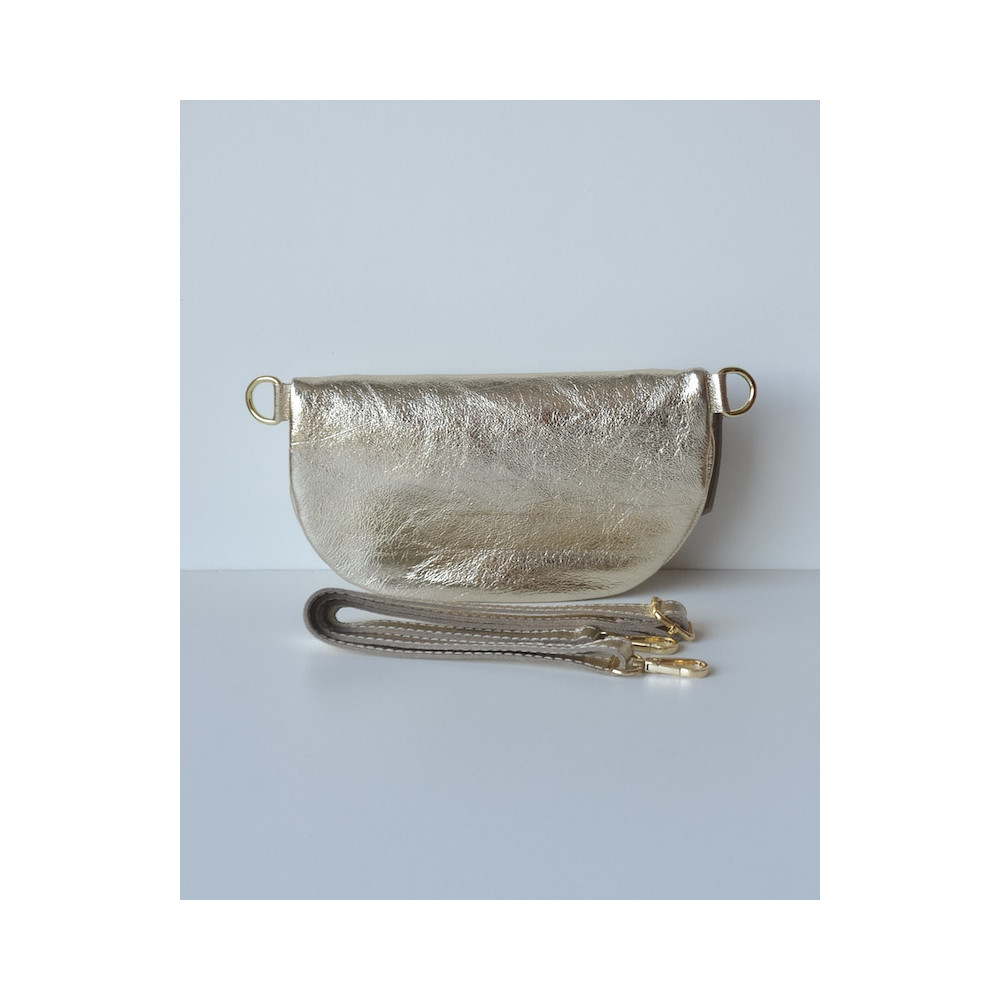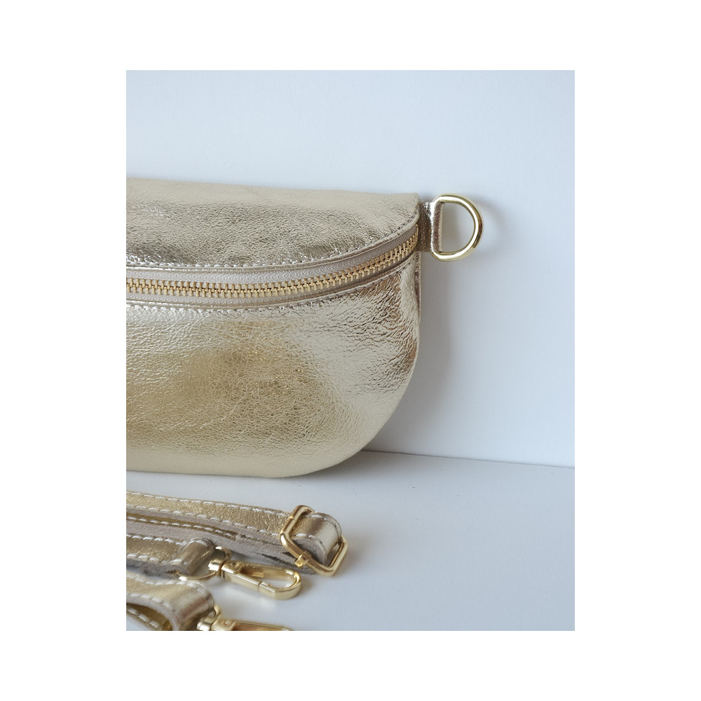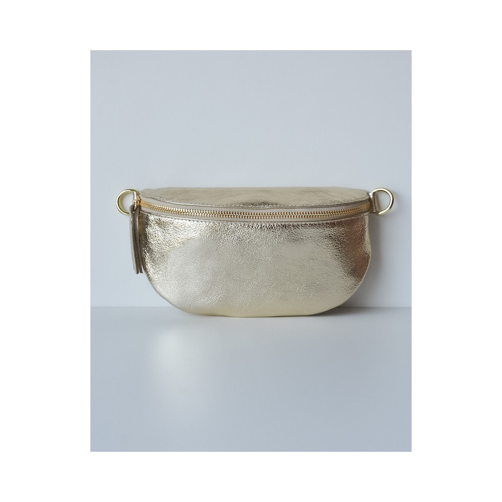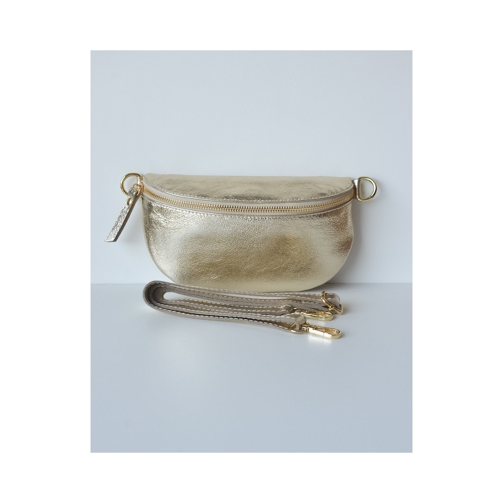 Sac banane 100% cuir avec le twist qui fait la différence : de belles couleurs brillantes ! Fabrication Italienne. Avec sa bandoulière.